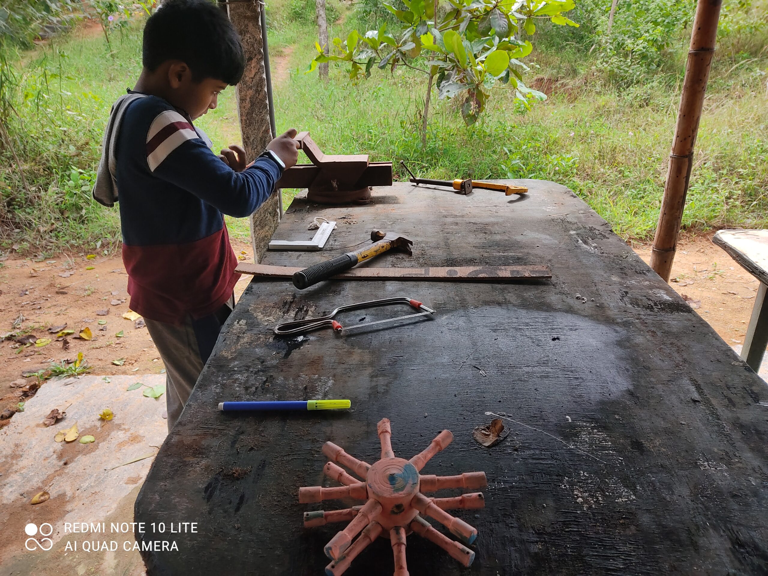 Her son, Aathi filled his day exploring many resources at campus and playing with peers of different ages in the natural space at campus. Meanwhile, sakila got guidance to work with her child on different responsibilities. A win-win for both!
