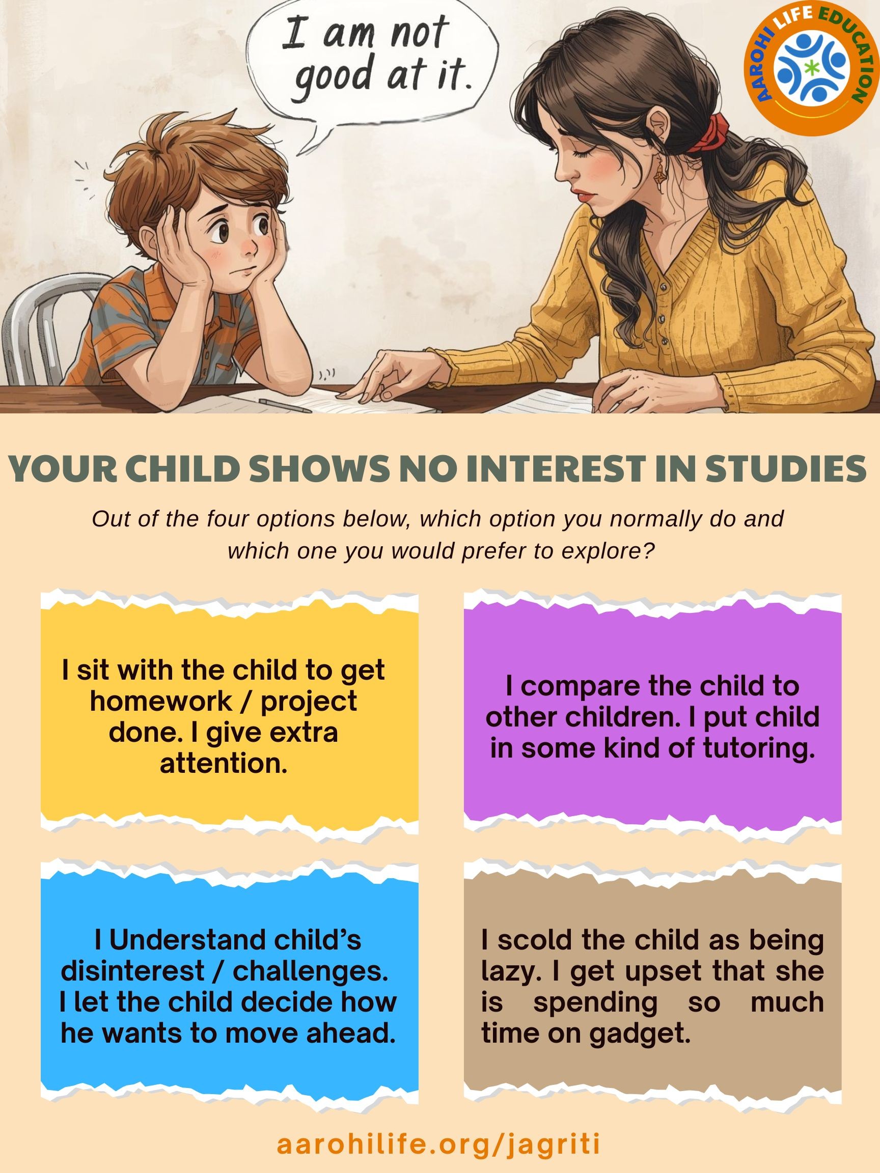 Jagriti is an online program that helps parents move from correction to connection. Instead of giving parenting tips, we open fresh perspectives — so you can understand, reflect, and transform the way you see yourself, your child, and life itself.