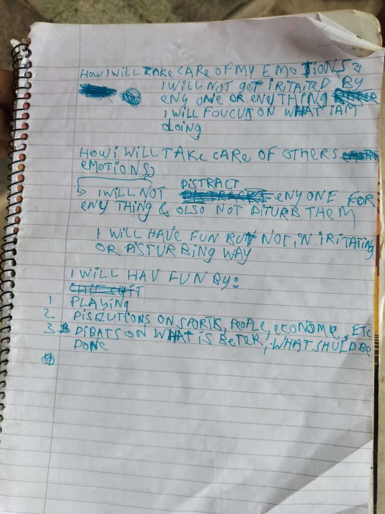 And this is the letter written by the child on he wants to take care of his emotions and what will he do instead of using abusive language